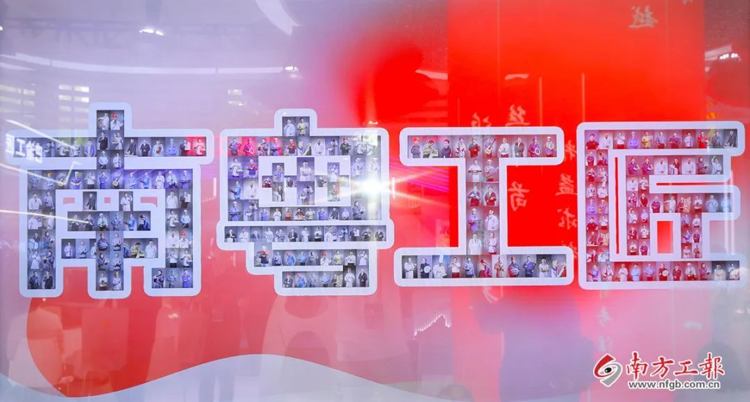自2016年起,廣東省總工會連續7年開展南粵工匠選樹活動,如今,已有100位高技能人才獲得南粵工匠稱號。展區里,100位南粵工匠圖片組成的“南粵工匠”字樣熠熠生輝,大屏上播放的《南粵工匠》紀錄片精編版也引人駐足。