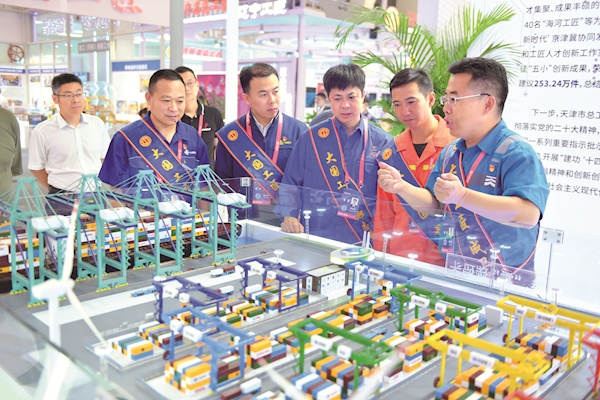 大國工匠們參觀天津展區的智慧港口綠色港口展臺 韓志忠/攝