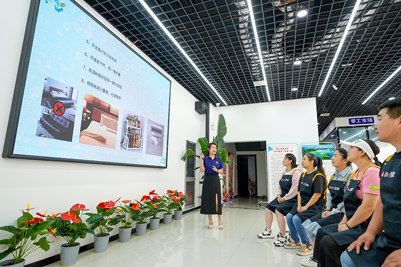 2023年7月2日,河北省唐山市路南區初心家園零工市場服務站的工作人員在對求職者進行家政技能培訓。