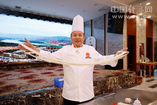 韓玉龍展示拉面技藝。中國經濟網記者 李凡攝