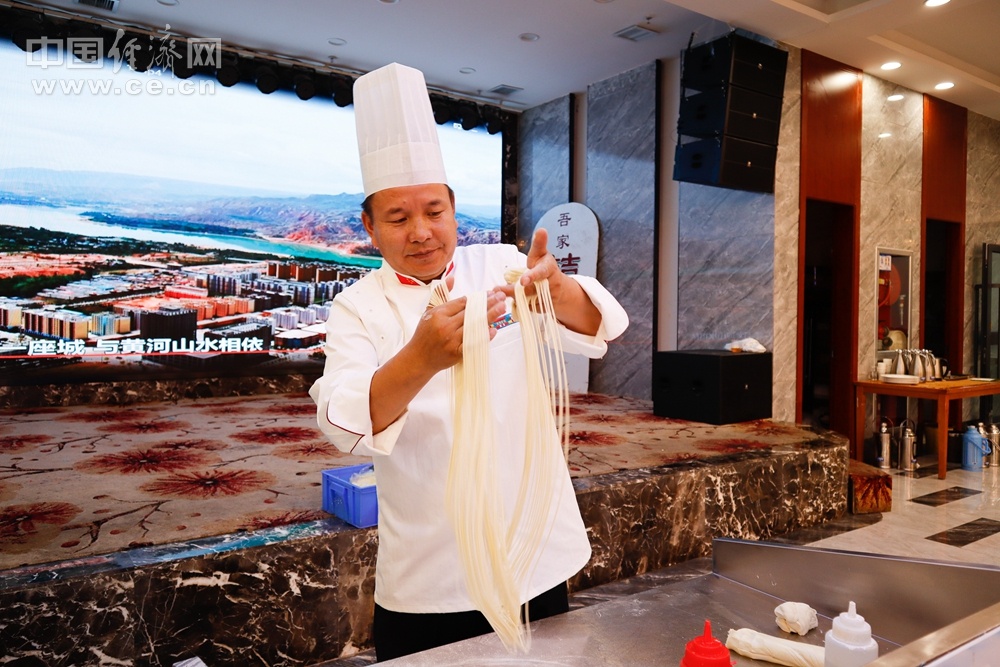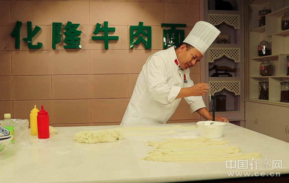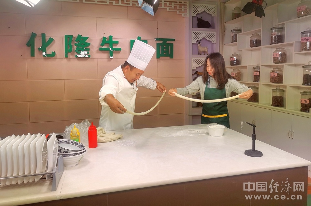 韓玉龍教授記者做拉面。中國經濟網記者 李凡攝。
