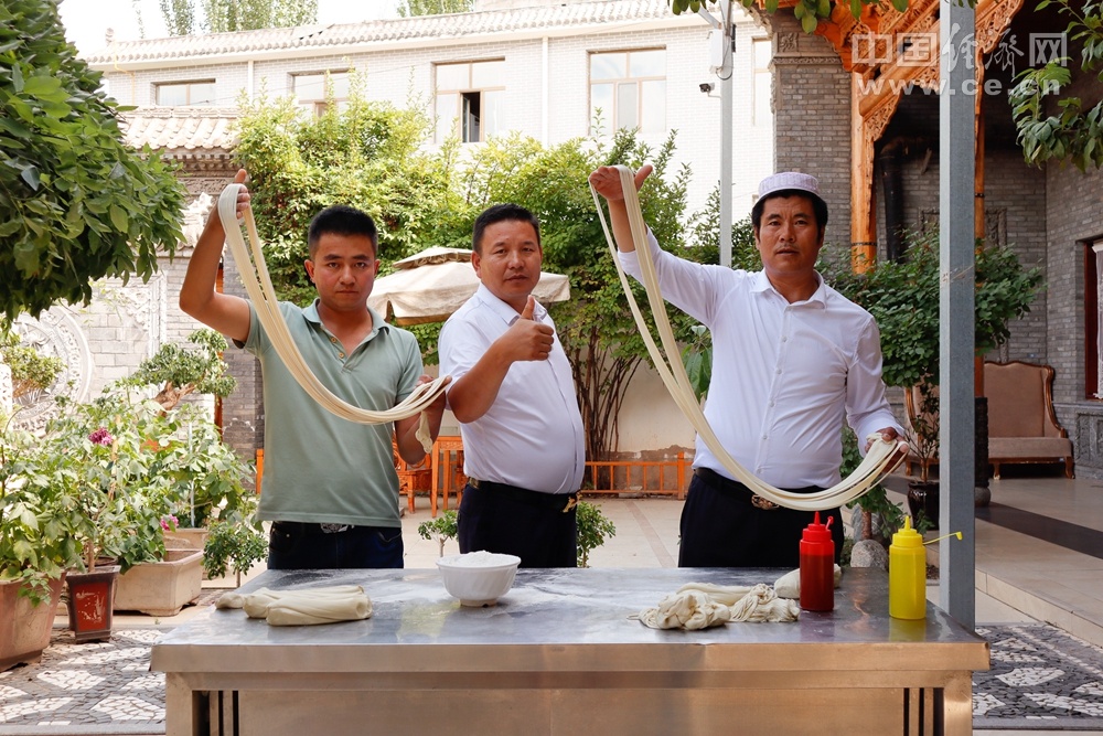 2020年,他在青洽會上把一團面拉出1024根,至今全國無人能超越;他首創將拉面穿出針眼,并且一次性能穿46根;他還走出國門到俄羅斯、迪拜、埃及等國家展示青海拉面師傅的高超技藝。因為他精湛的技術,讓他的拉面之路越走越遠。