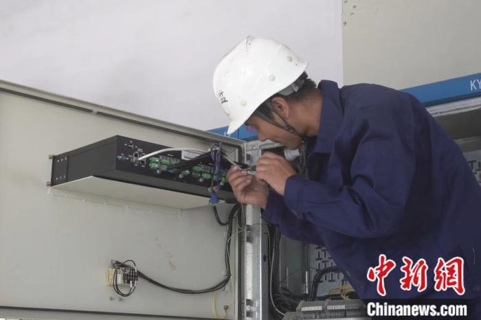 陳志財和同事在總控室操作綜合自動化集控系統。董語飛 攝