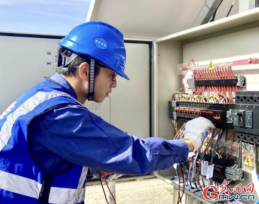 熊金恒與同事檢查調(diào)試光伏發(fā)電設(shè)備。蔣新宇攝