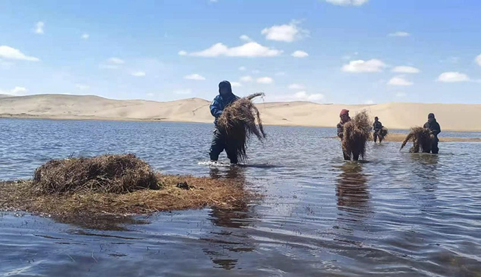 湖水冰冷刺骨,涉水搭建一個鶴巢要40多分鐘,但效果顯著。“我們生態管護站為黑頸鶴搭建了至少118處新家。去年統計的數據顯示,黃河鄉境內黑頸鶴的數量從121只增加到了293只,繁殖率也從20%提高到了90%左右。”加羊多杰驕傲地說。