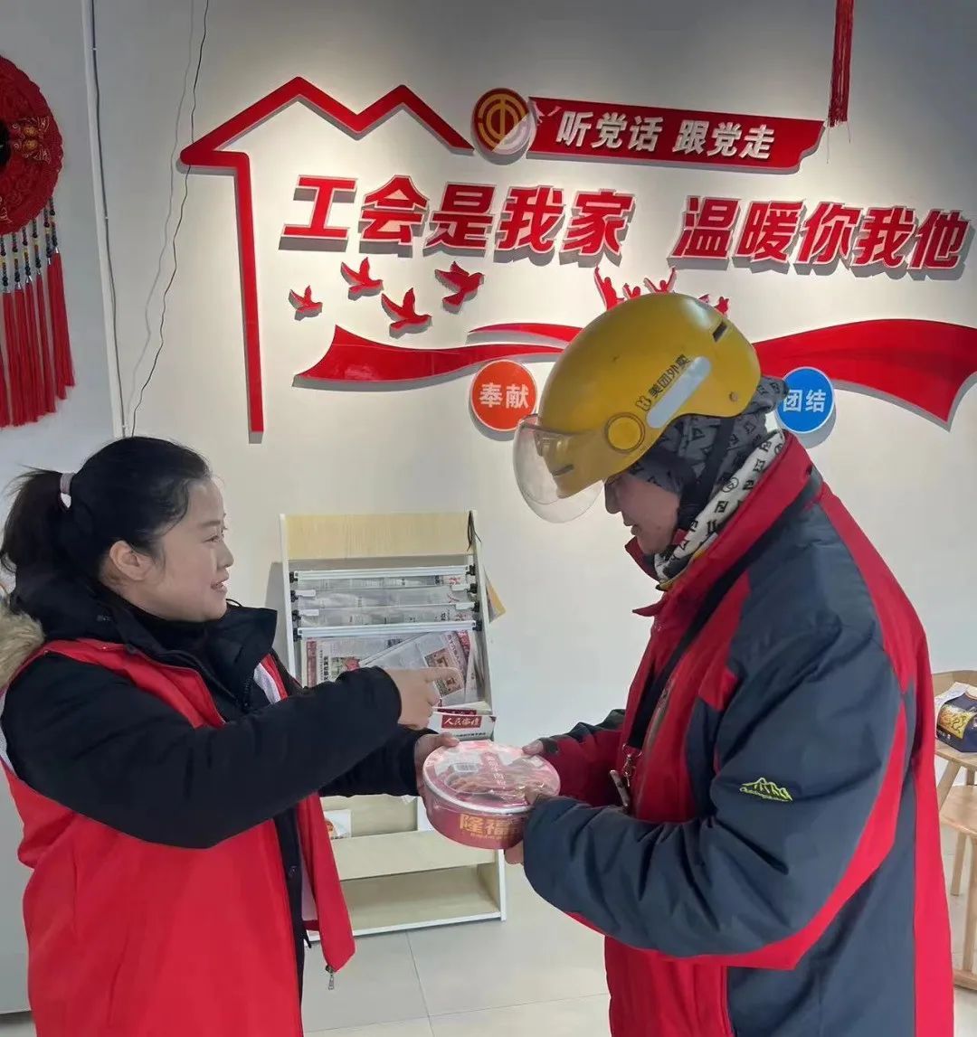 春節期間,為方便廣大留守崗位的外賣配送員加入工會并領取入會愛心禮包,福州市總工會在20個“智能職工服務e站”內發放入會愛心禮包500份。