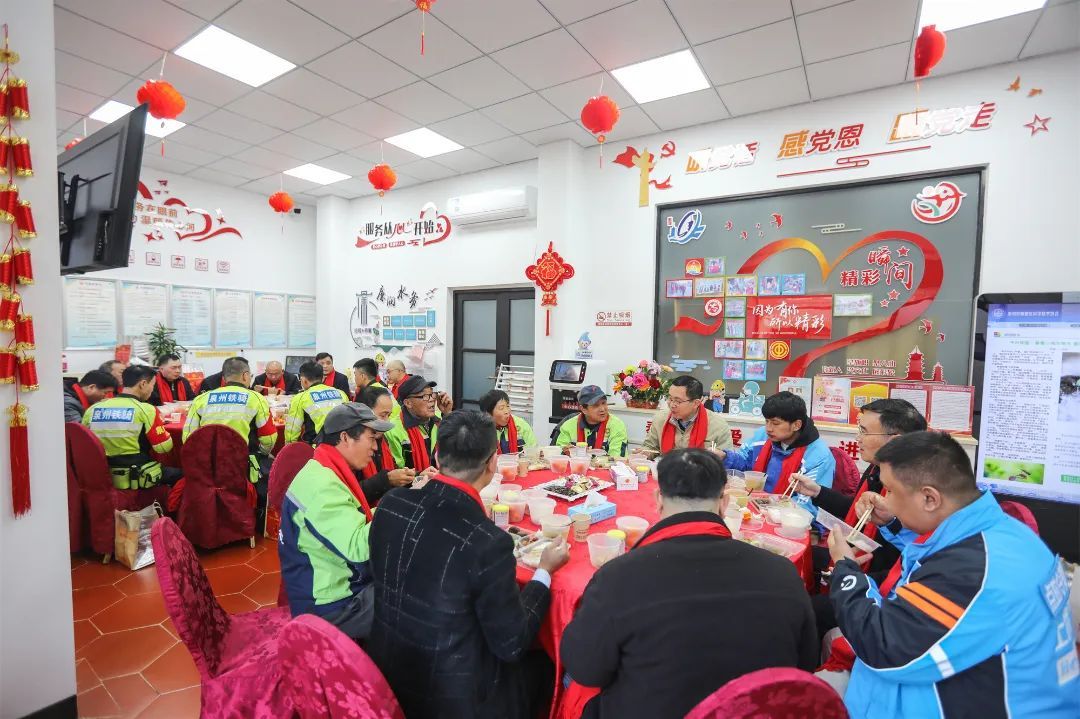 工會干部與職工代表們一道掛“中國結”,裝扮工會驛站這個共同的“家”。在歡聲笑語中,大家聊家常話來年,送祝福鼓士氣,同吃年夜飯、共享“家”的味道、共慶龍年春節。
