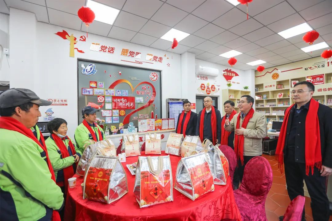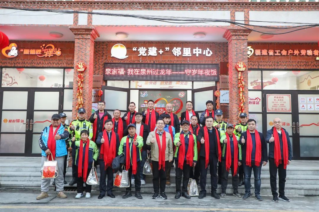 9日傍晚五時半許,夜色漸濃,坐落在泉州古城西街西段的升文社區工會驛站內,喜慶紅火的燈籠高掛,象征團團圓圓、吉祥如意的“中國結”更添了“家”的味道。泉州市、鯉城區、鯉中街道和市公交集團等工會“娘家人”披著“工會紅”圍巾,冒著寒風走進溫暖的工會驛站,為正在驛站里休息的外賣小哥、公交駕駛員、社區巴士駕駛員、環衛保潔工人、執勤交警、出租車司機等堅守崗位的一線職工分發愛心年夜飯禮包,致以新春祝福和暖心問候。