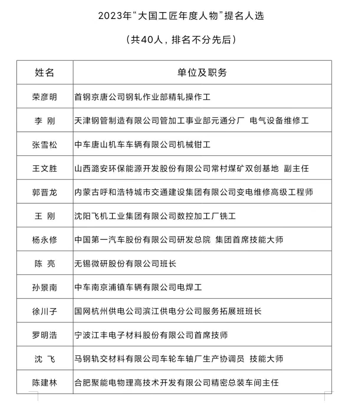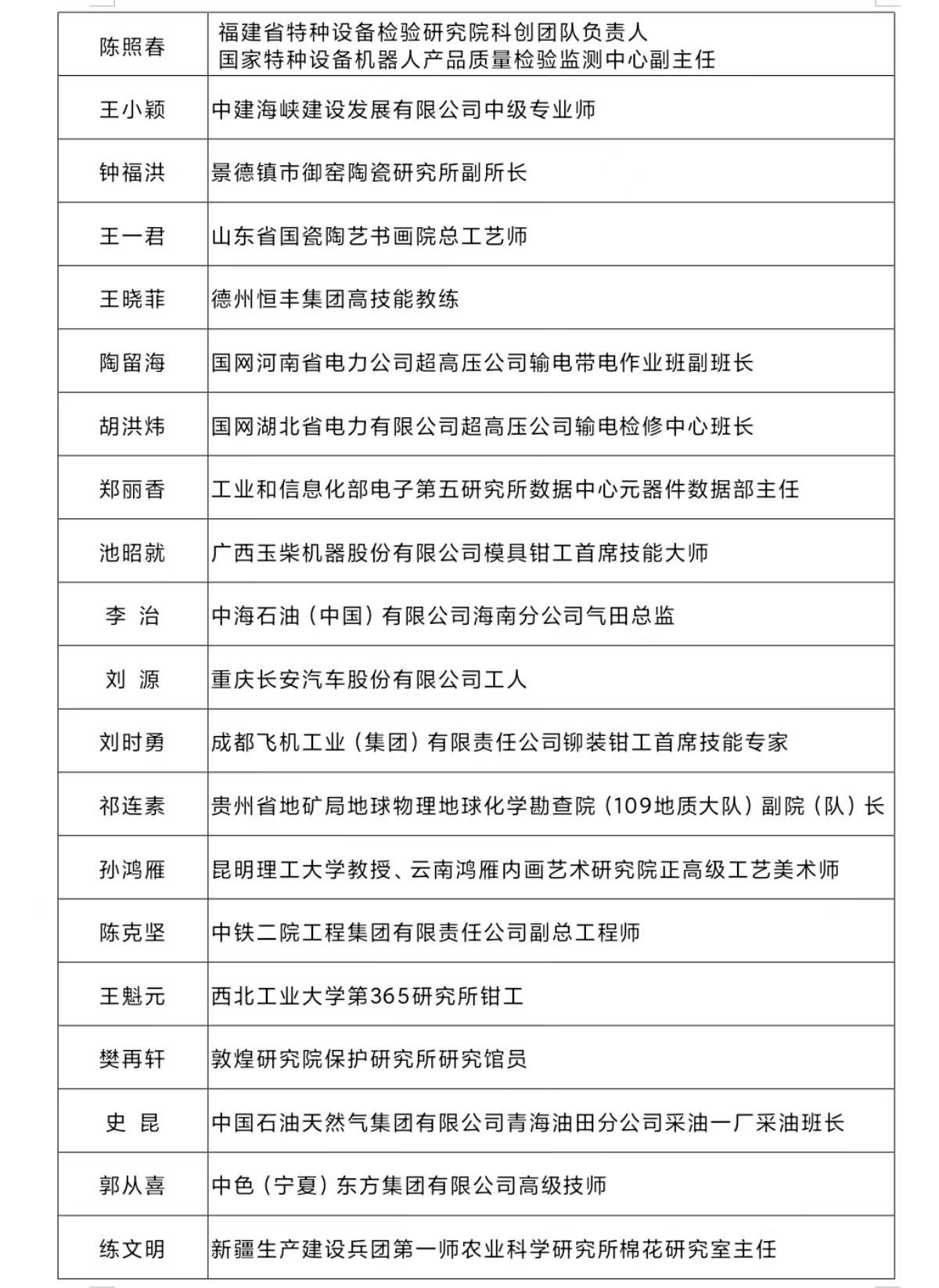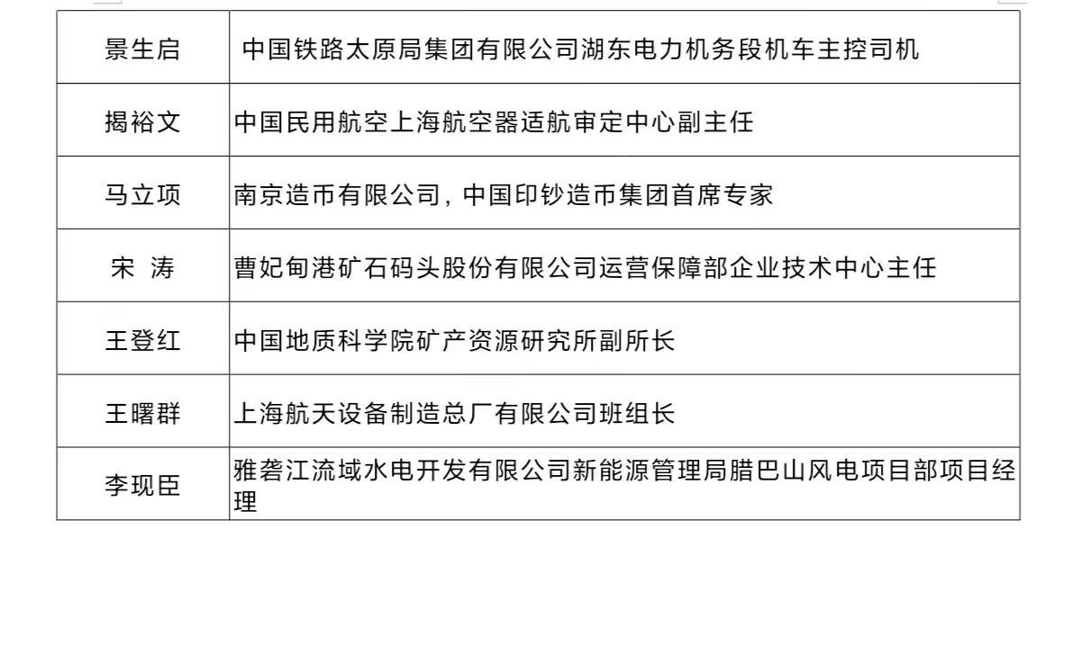 十位“大國工匠年度人物”分別是:
