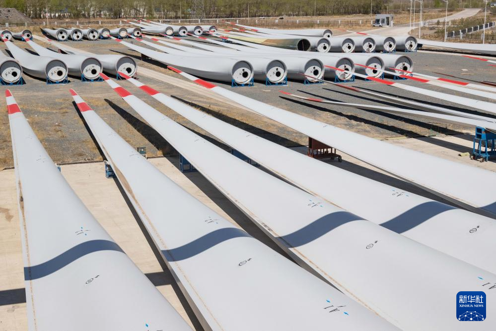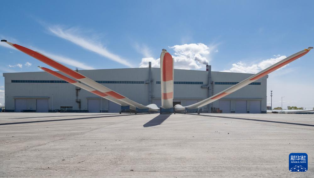 這是4月28日在一重龍申(齊齊哈爾)復合材料有限公司廠區拍攝的風電葉片。新華社記者 謝劍飛 攝