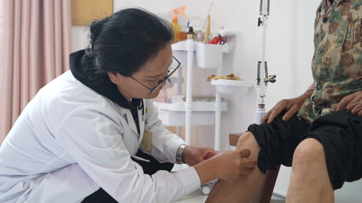 4月22日,張智娟在村衛生室為前來就診的群眾開展針灸治療。(段宏運 攝)