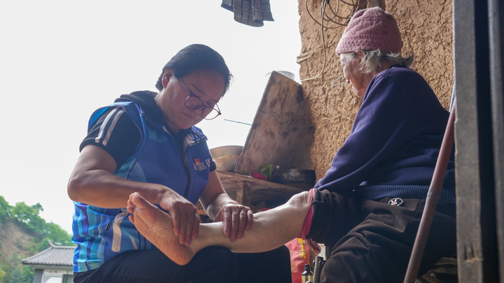 4月22日,張智娟到村民家中進行中醫診療。(段宏運 攝)