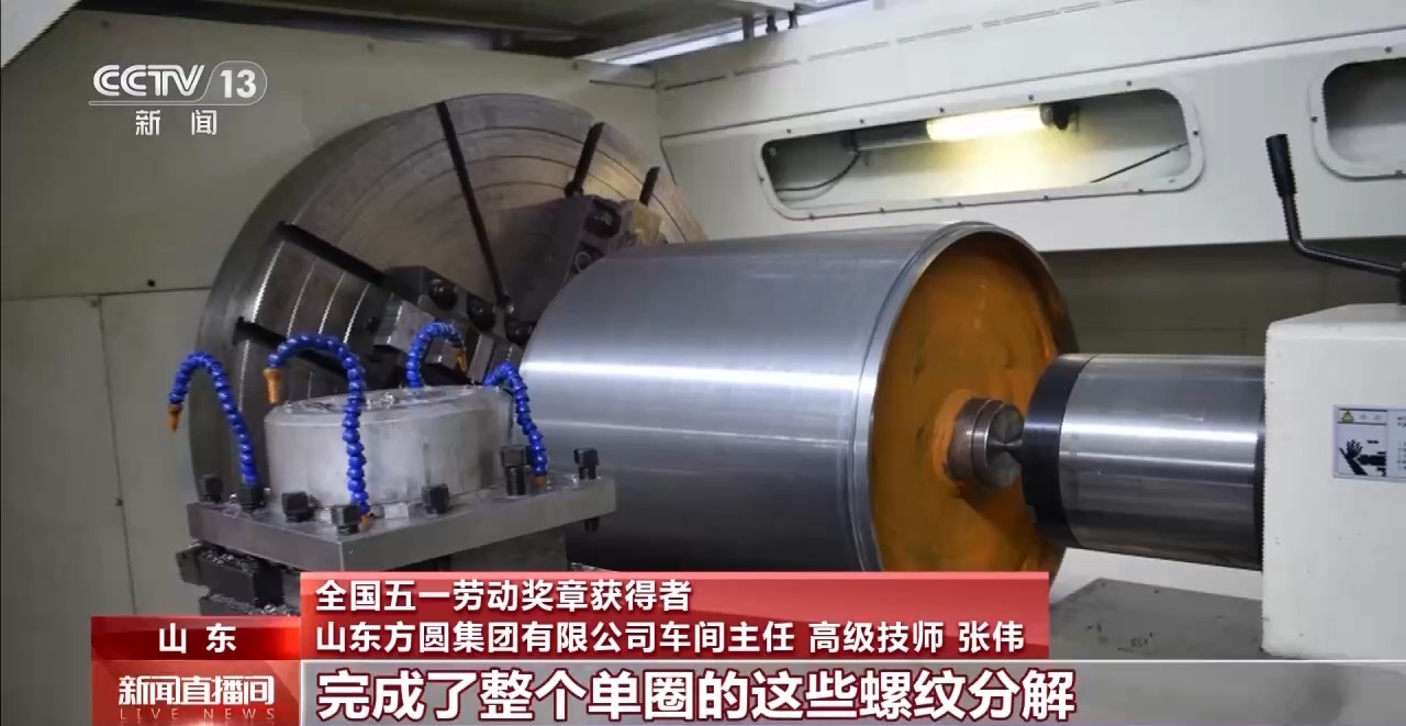 全國五一勞動獎章獲得者 山東方圓集團有限公司車間主任 高級技師 張偉:我手的位置大約也就是45度的位置,給我帶來的靈感,讓我把整個圓分解成4段,完成了整個單圈螺紋的分解,無限次的循環就可以完成整個卷筒的加工。