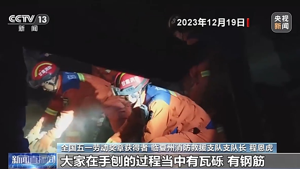 全國五一勞動獎?wù)芦@得者 臨夏州消防救援支隊支隊長 程恩虎:我們到達大河家鎮(zhèn)的時候,全鎮(zhèn)已經(jīng)全部停電。從咱們廢墟里面逃離出來的這些老百姓都穿著很單薄的衣服,有些披的毛毯,有些披的被子,在路邊的空地里點的柴火進行取暖。當看到咱們消防指戰(zhàn)員的身影后,他們立馬感覺靠山來了,第一時間咱們和百姓在一起形成了一支強力的戰(zhàn)斗聯(lián)盟,開始搜救被困人員。