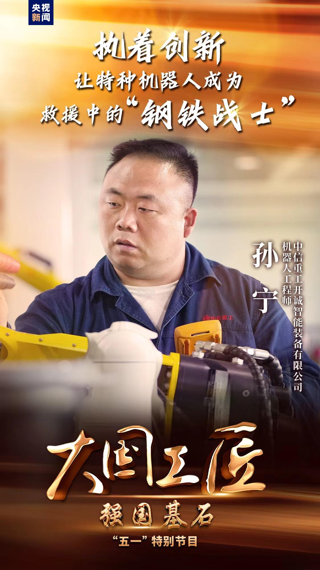中信重工開誠智能裝備有限公司機器人工程師 孫寧:就像看著自己的孩子,在這些關鍵的場合發揮能夠發揮重大的作用,那是一個非常驕傲,也是一個非常幸福的事。