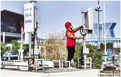 浙江移動(dòng)技術(shù)人員正在調(diào)測(cè)5G-A基站。5G-A是5G向6G發(fā)展的關(guān)鍵階段,相較于5G,其具有更高速率、更大連接、更低時(shí)延等特點(diǎn)。