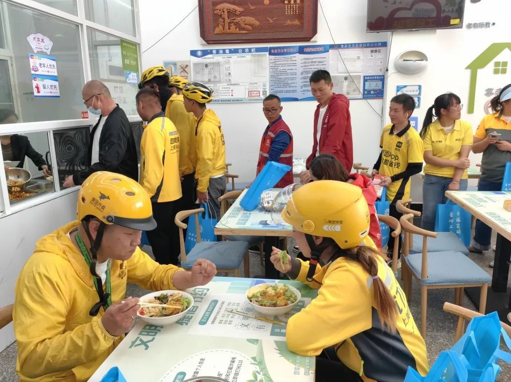 在嵩陽社區,戶外勞動者服務站點與社區的“幸福食堂”相連,戶外勞動者就餐休息更加便捷,留住幸福的味道。
