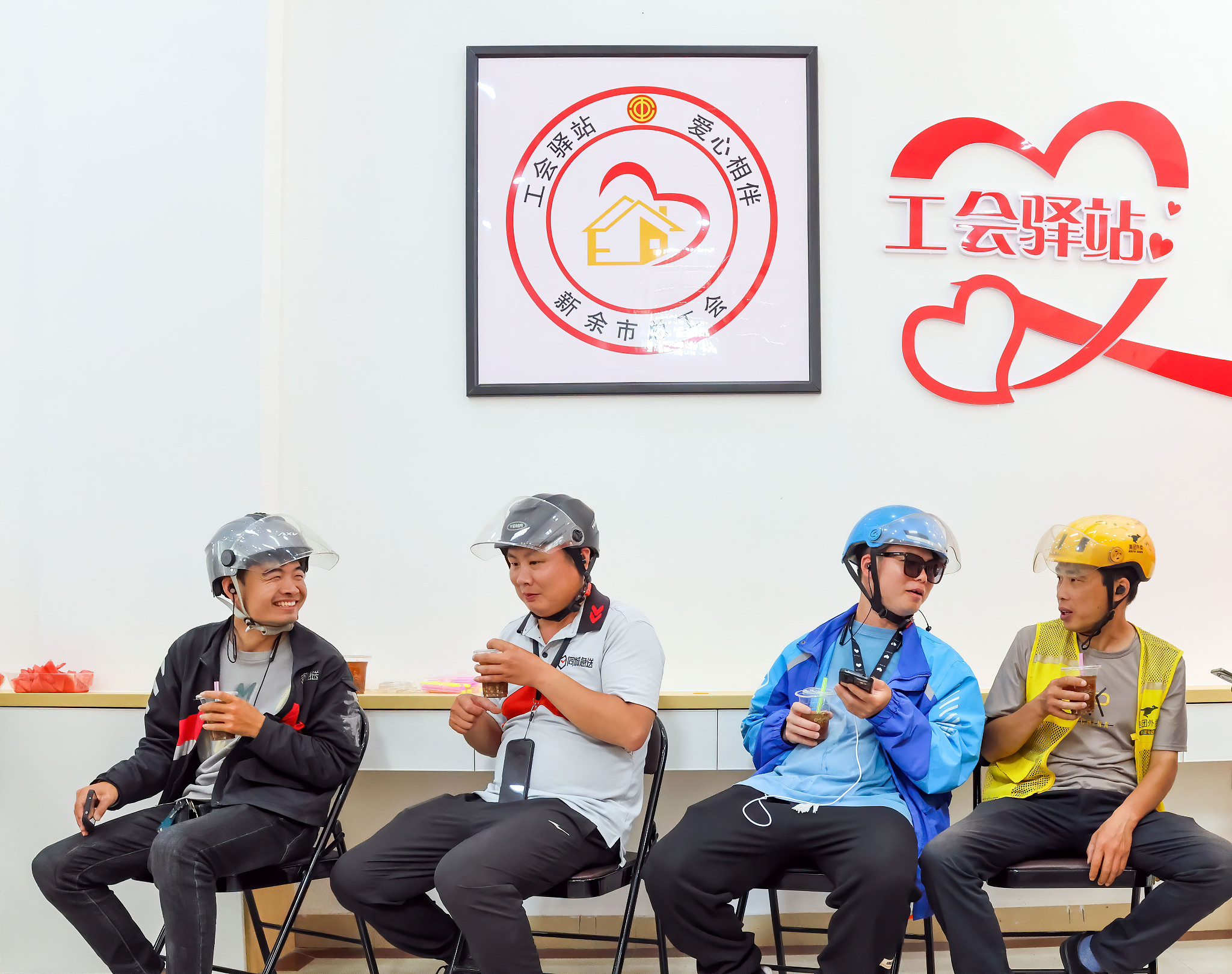 目前,新余市總工會已在全市打造這樣的工會驛站92家,為外賣員、快遞員、環衛工人等戶外勞動者提供休憩、喝水、充電、熱飯等免費服務,并不定期開展義務理發等活動,深受廣大戶外勞動者歡迎。(圖片來源:視覺中國)