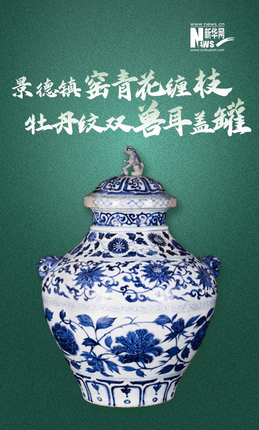 (元)景德鎮窯青花纏枝牡丹紋雙獸耳蓋罐現藏于淮安中國漕運博物館