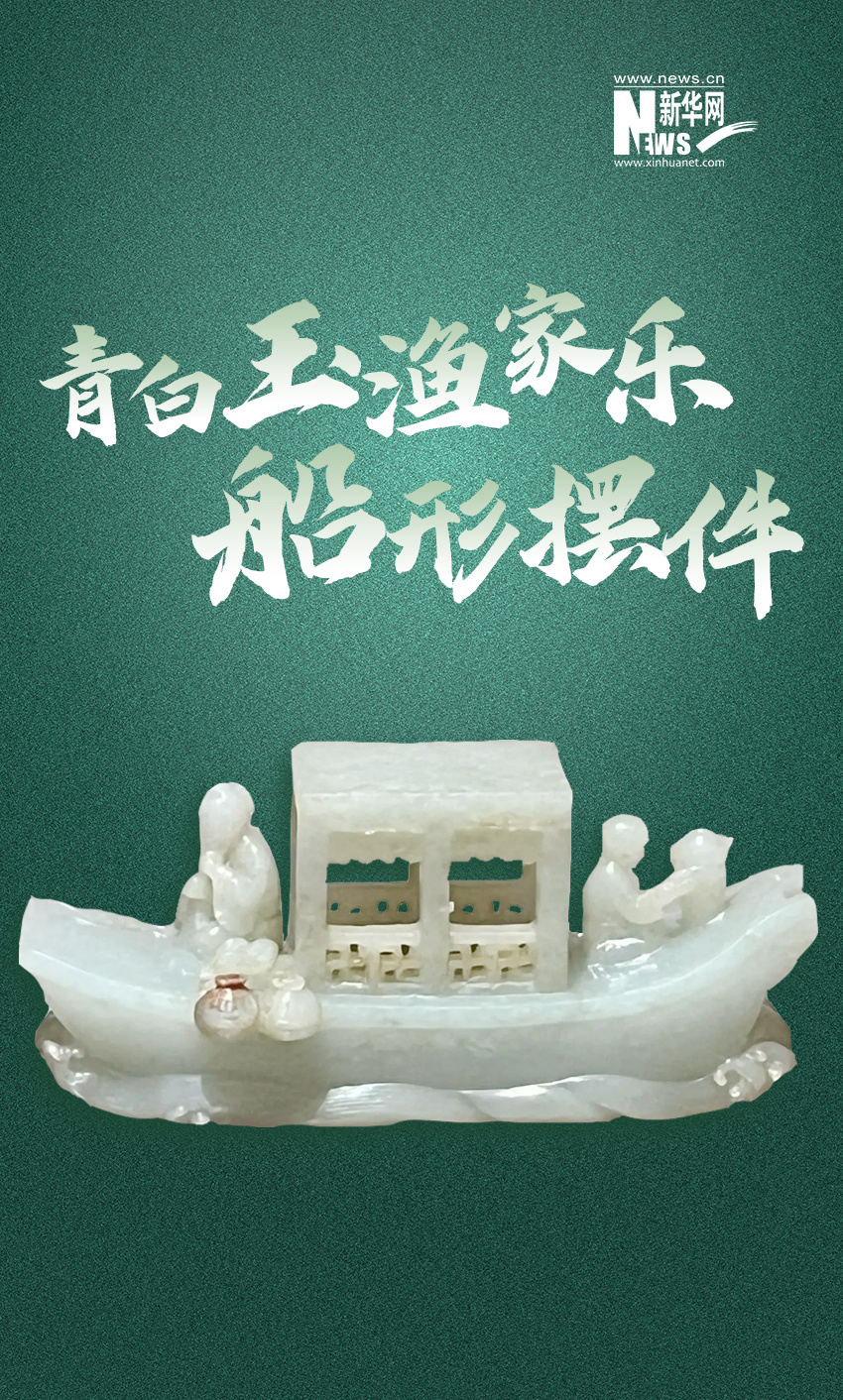 (清)青白玉漁家樂船形擺件,現藏于中國大運河博物館