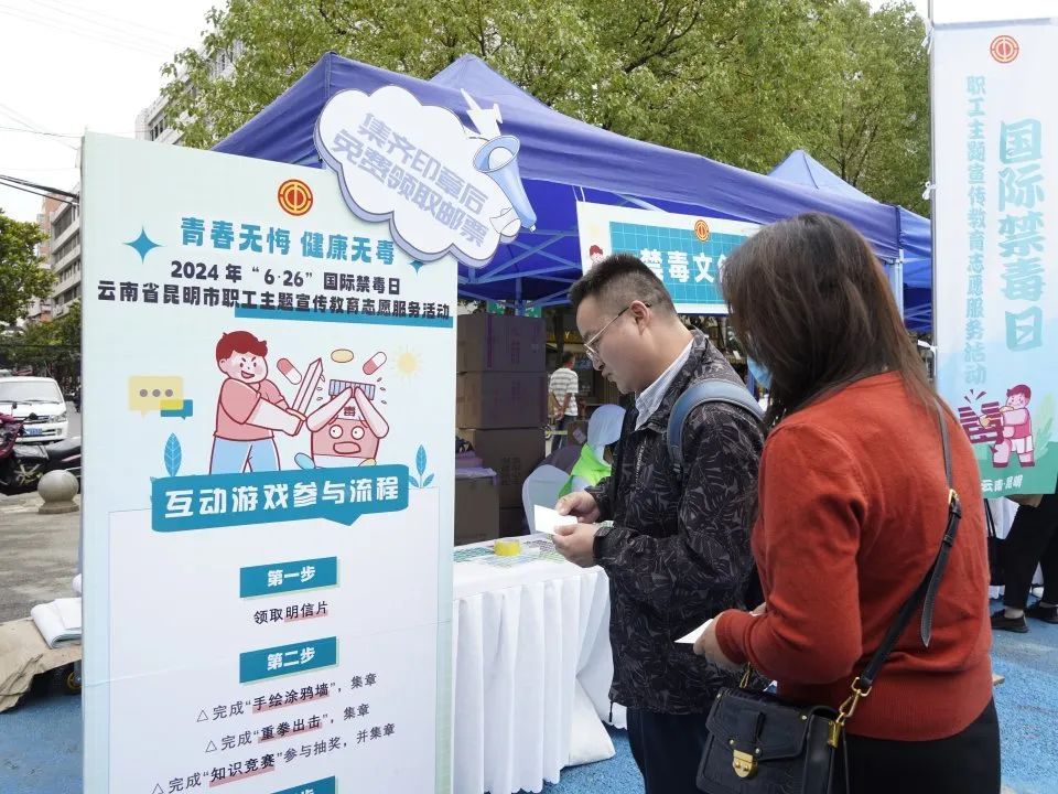 為進一步加大禁毒宣傳力度,激發廣大職工群眾參與禁毒的熱情,增強職工群眾禁毒意識,推進禁毒宣傳教育廣覆蓋。6月26日,由云南省總工會、昆明市總工會主辦,盤龍區總工會承辦,盤龍區鼓樓街道桃源社區工會聯合會協辦的2024年“6·26”國際禁毒日云南省昆明市職工主題宣傳教育志愿服務活動在桃源廣場順利舉行。省、市、區工會相關負責同志參加活動。