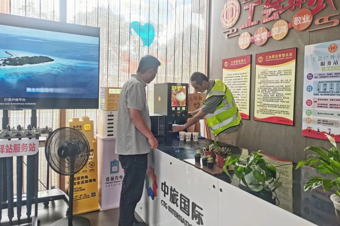 工會驛站為戶外勞動者提供一個“冷可取暖、熱可納涼、渴可喝水、餓可熱飯、累可歇腳、傷可用藥”的溫馨港灣,讓戶外勞動者感受到黨組織和工會組織的溫暖。