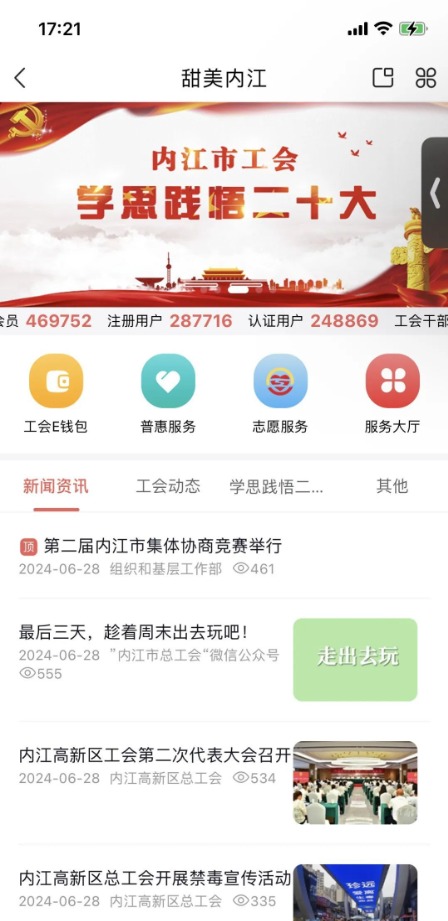 內(nèi)江市總工會(huì)以“工會(huì)+互聯(lián)網(wǎng)+普惠”為著力點(diǎn),整合各方資源,以數(shù)字化賦能普惠服務(wù),打通服務(wù)基層工會(huì)和職工群眾的“最后一公里”,不斷增強(qiáng)工會(huì)組織凝聚力、影響力、號(hào)召力。截至目前,甜美內(nèi)江頻道注冊(cè)用戶已近30萬,認(rèn)證用戶已近29萬。