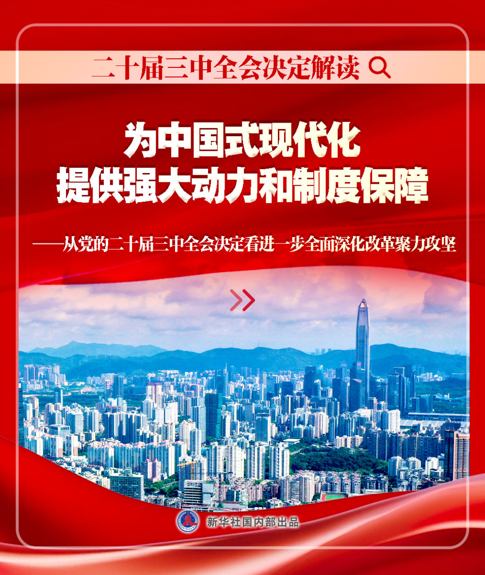 7月21日,《中共中央關于進一步全面深化改革、推進中國式現代化的決定》發布。新華社推出一系列解讀報道,深入闡釋黨的二十屆三中全會決定。