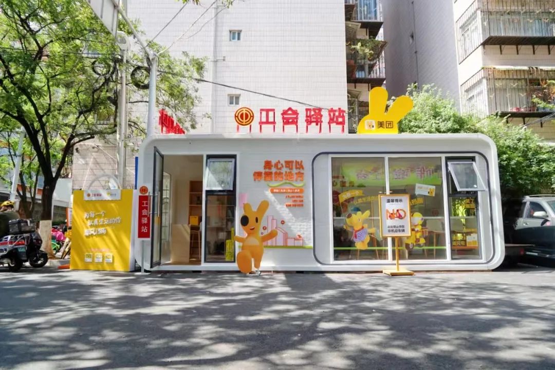 當(dāng)然,富春街工會(huì)驛站的獨(dú)特之處不僅僅局限于外觀,而是它的共建機(jī)制。五華區(qū)大觀街道總工會(huì)與美團(tuán)云南總部簽訂共建協(xié)議,將工會(huì)驛站和美團(tuán)職工服務(wù)驛站有機(jī)融合,通過(guò)資源整合、形成合力,共同打造云南首個(gè)“工會(huì)+頭部平臺(tái)企業(yè)”共建的工會(huì)驛站。