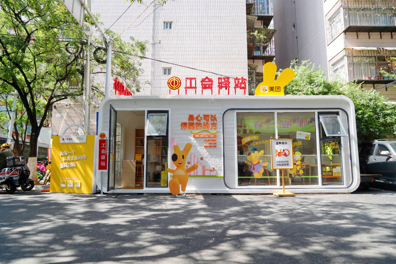 “這個工會驛站很不一樣,除了工會的元素之外,還有很多美團的標識,看著就很親切……就像是專門為我們量身定制的!”