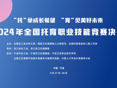 直播回顧丨2024年全國托育職業技能競賽決賽8月30日閉幕?????由全國總工會女職工部、國家衛生健康委人口家庭司、全國婦聯家庭和兒童工作部主辦,浙江省總工會、浙江省衛生健康委承辦的全國托育職業技能競賽決賽將于2024年8月27日至30日在浙江寧波開賽。競賽分為保育師(職工組)、保育師(學生組)和育嬰員(職工組)3個賽道,面向廣大保育、育嬰工作者和職業院校相關專業學生廣泛開展,聚焦托育服務人才培養,以賽促學,以賽促建。作為首次全國性托育職業技能競賽,本次競賽參賽選手多、關注度高、社會影響大,全國31個省級代表隊高度重視此次競賽,經省級初賽共選拔近300名選手參加決賽。8月30日9:00閉幕式,中工網首頁、微博、抖音號、微信視頻號、頭條號同步直播。