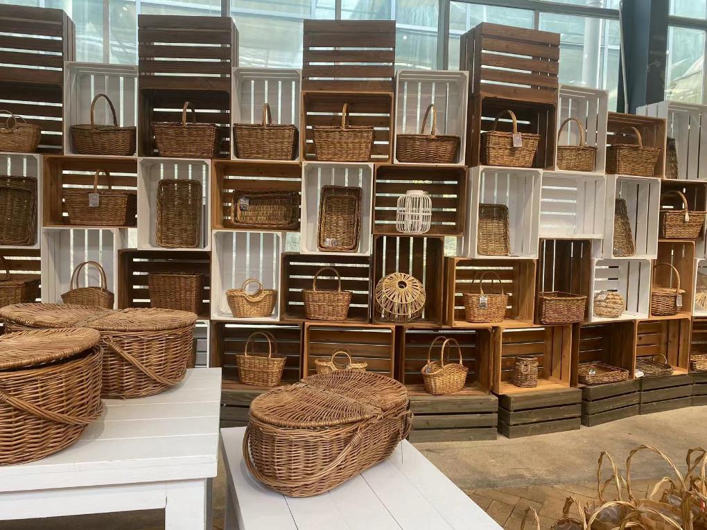 山東省臨沂市臨沭縣歐拉農場展示的柳編家居收納物件。新華社記者劉錚 攝