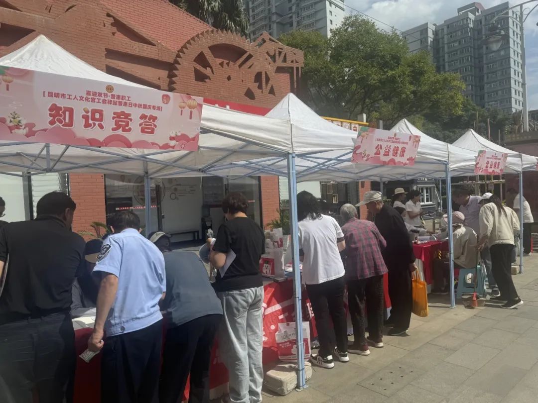 在中秋節(jié)即將到來之際,9月14日下午,昆明市總工會以戶外勞動者的實際需求為導(dǎo)向,在昆明市工人文化宮工會驛站開展“喜迎雙節(jié) 普惠職工—昆明市工人文化宮工會驛站普惠日中秋國慶專場”活動,在炎熱的天氣,為戶外勞動者送上冰棍、扇子和普惠服務(wù),將工會驛站與普惠活動進(jìn)行有機結(jié)合,實現(xiàn)工會服務(wù)的效能疊加,有效促進(jìn)驛站功能的發(fā)揮。