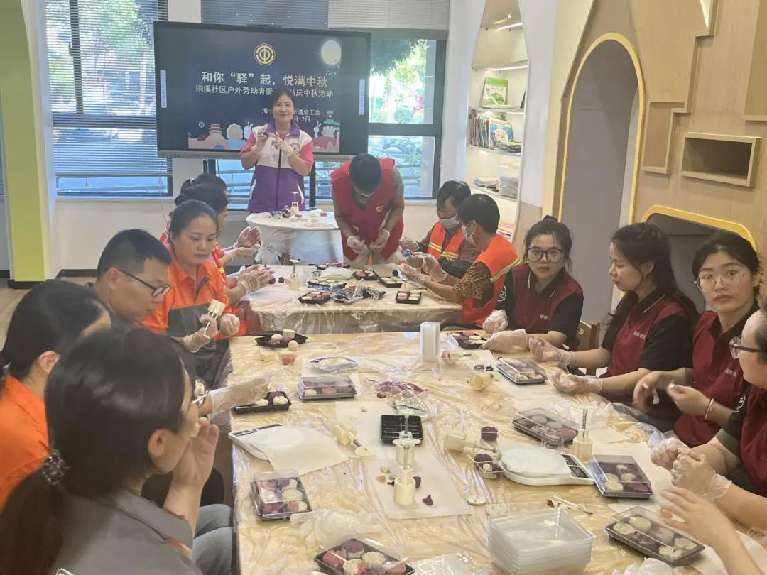 12日下午,馬橋街道總工會在桐溪社區(qū)戶外勞動者愛心驛站共同舉辦了“和你‘驛’起,悅滿中秋”節(jié)日主題活動。近20名戶外勞動者參加了本次活動,親身體驗手工制作月餅的全流程,感受中國傳統(tǒng)文化的魅力和工會組織對新就業(yè)形態(tài)勞動者的深切關(guān)懷。