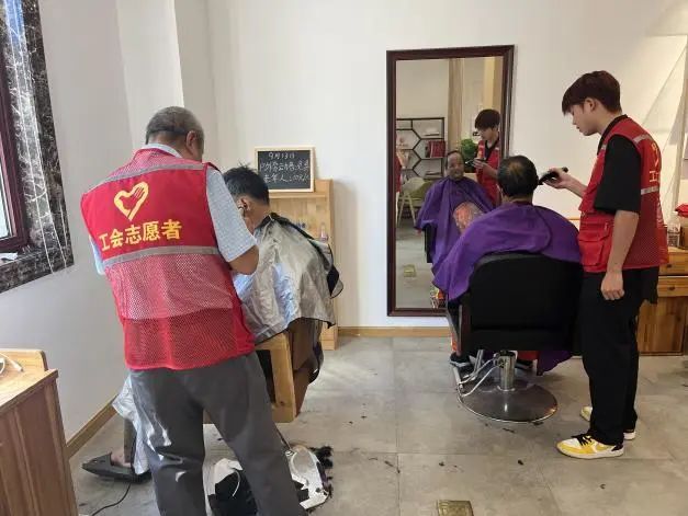 活動現(xiàn)場,志愿者理發(fā)師為戶外勞動者們免費理發(fā),匯鑫助民社會工作服務(wù)中心醫(yī)護人員為戶外勞動群體免費測量血壓、拔罐等健康服務(wù),還為他們準(zhǔn)備了香噴噴的午餐、中秋月餅和清涼的西瓜,與他們圍坐在一起話中秋、嘮家常,拉進(jìn)了彼此之間的距離,更好地了解他們的內(nèi)心需求,為進(jìn)一步完善工會驛站服務(wù)水準(zhǔn)提供借鑒。