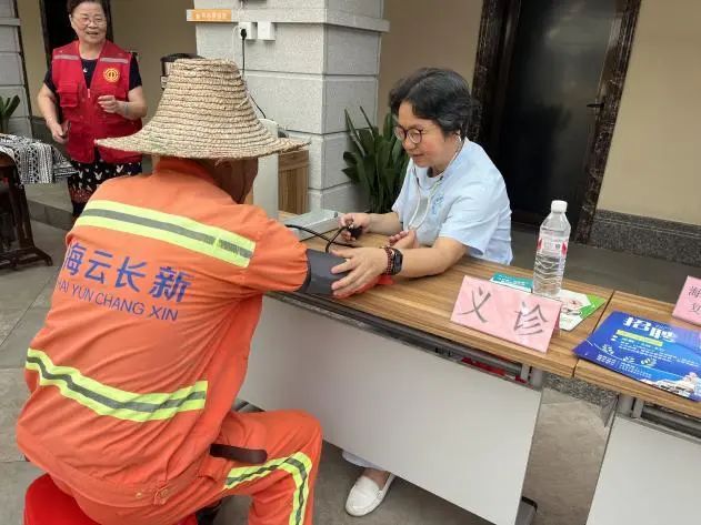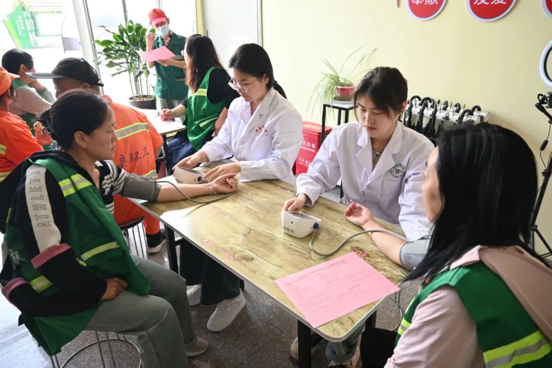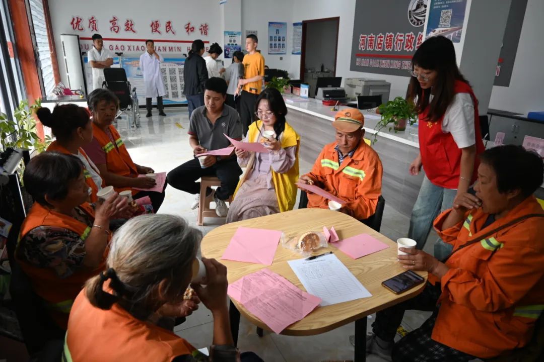 在河南店工會驛站,環(huán)衛(wèi)工、快遞員等一線工人品嘗月餅,聽志愿者講解工會會員大病互助政策。河南店衛(wèi)生院的醫(yī)生為他們進(jìn)行義診,并送上節(jié)日祝福,希望他們安心、健康過節(jié)。