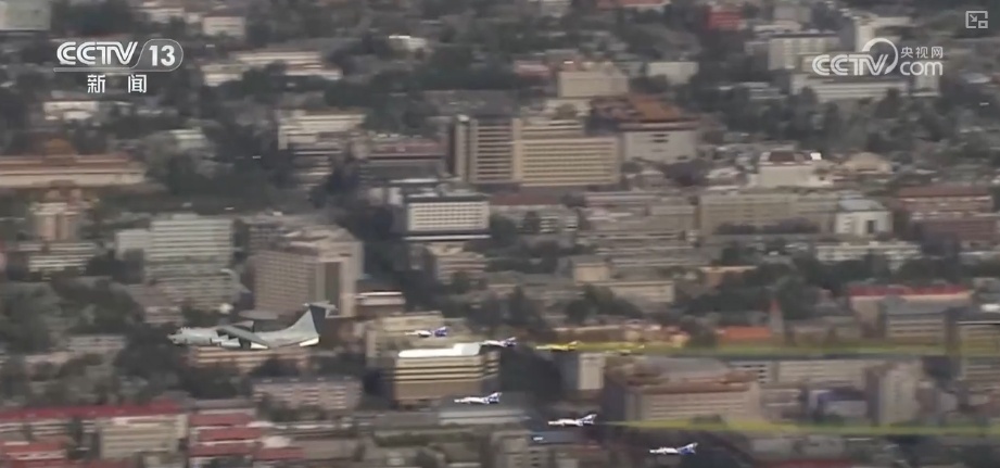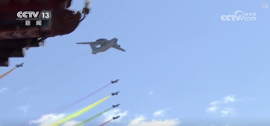 率先飛過天安門上空的是多機編隊的領隊梯隊,帶隊長機是空警2000預警機,“藍天嬌子”攜雷霆之勢展空中雄姿。