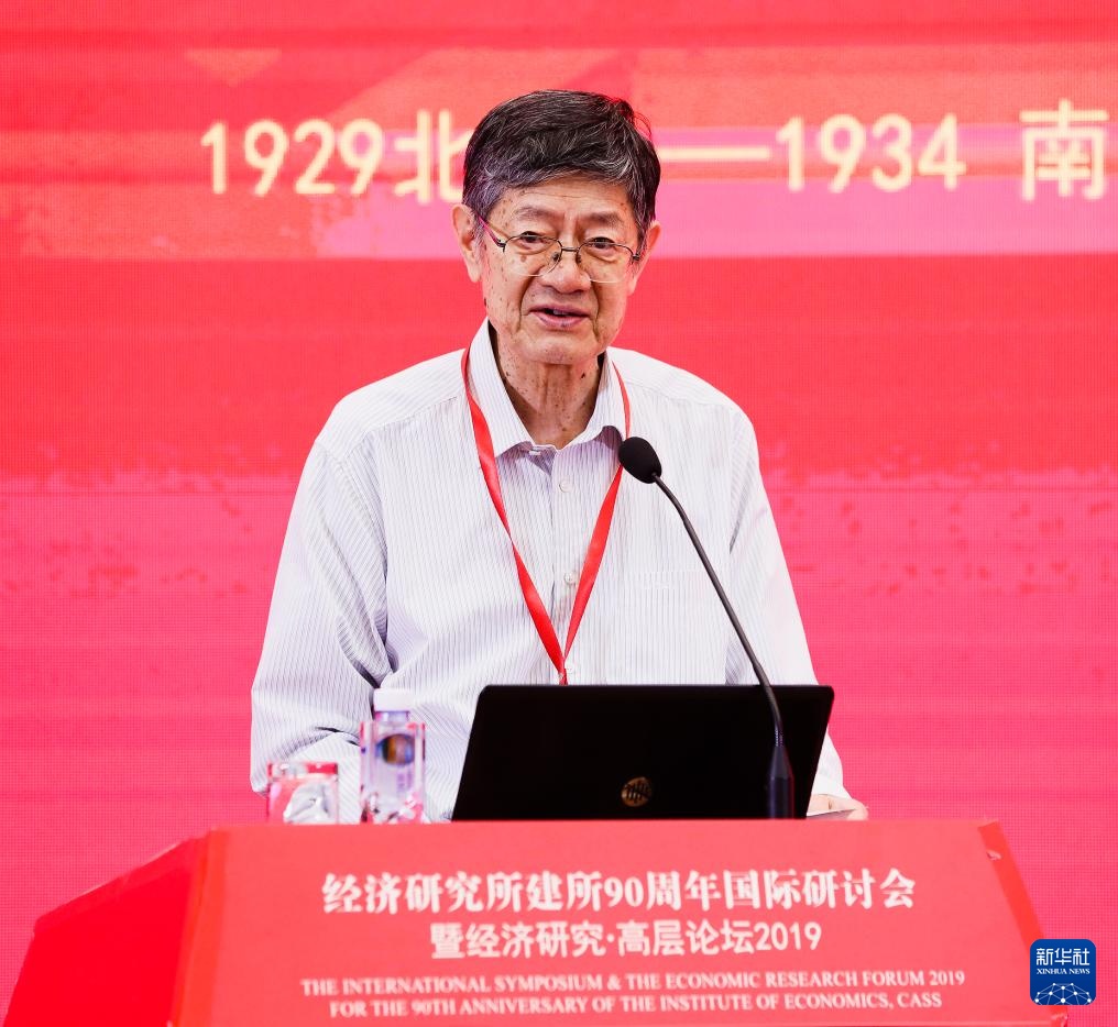 2019年5月17日,張卓元在“中國社會科學院經濟研究所建所90周年國際研討會暨經濟研究·高層論壇2019”上致辭。新華社發(中國社會科學院經濟研究所供圖)