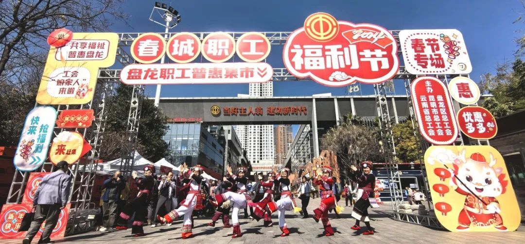 昆明市工人文化宮在云南機床廠舊址新建,功能設施齊全,文體活動豐富,成為昆明市廣大職工的學校和樂園。2024年2月4日,云南省總工會、昆明市總工會、盤龍區總工會聯合舉辦“職工普惠集市”活動,少數民族職工在集市上載歌載舞。