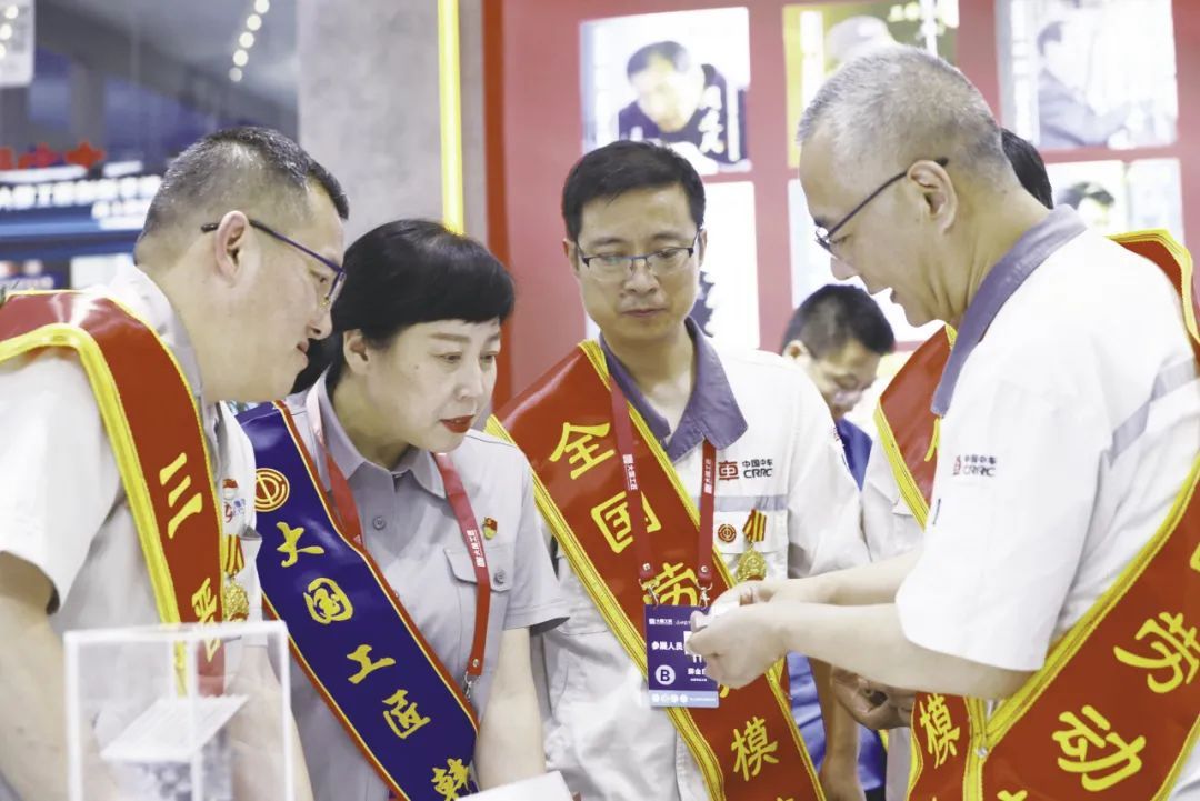 2023年7月,北京,第二屆大國工匠創新交流大會山西展區,幾位參展勞模工匠就創新成果展開激烈討論,交流創新體會。