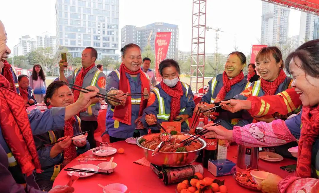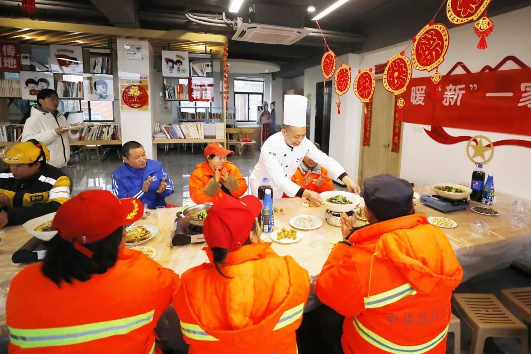 2024年2月2日,農歷小年,湖北武漢武昌區中華路街都府堤工會驛站,外賣騎手、快遞小哥、環衛工人等同吃團圓飯,工會特邀荊楚工匠、烹飪大師郭方斌掌勺烹制。“兩節”期間湖北省工會籌集超2.1億元資金,為廣大勞動者送溫暖送慰問。