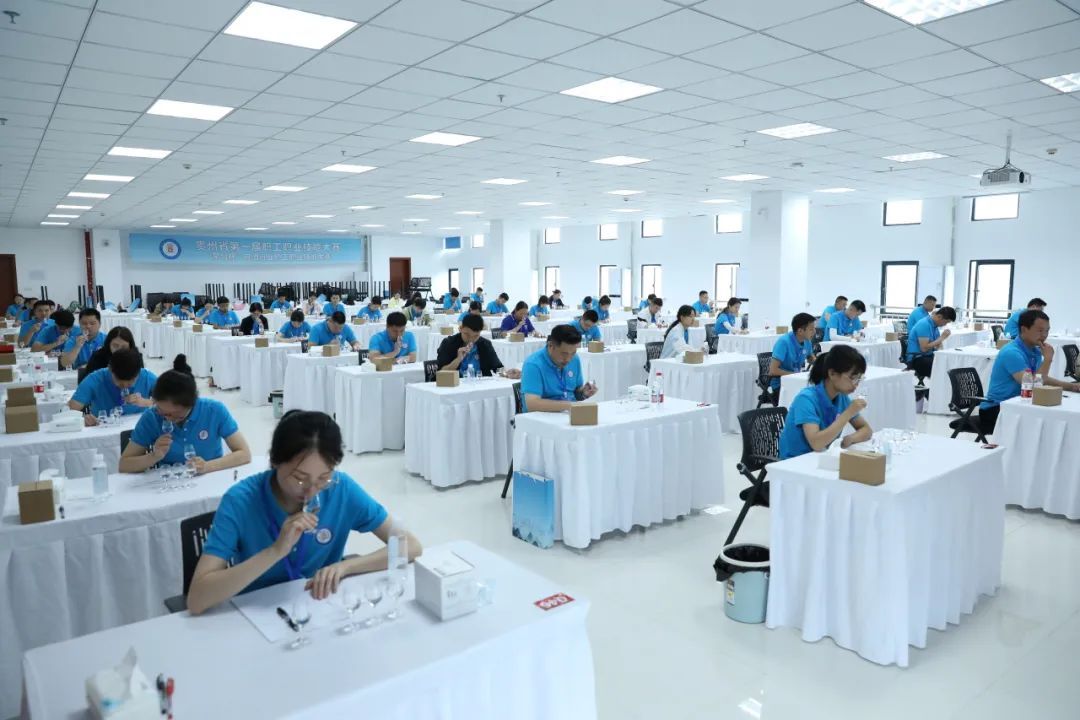 2022年7月至2023年6月,貴州省總工會等12家單位聯合舉辦貴州省第一屆職工職業技能大賽。結合貴州產業特色,設置白酒釀造、品評、勾調、制曲、茶葉加工、手工刺繡等工種比賽。圖為白酒品評項目比賽現場。