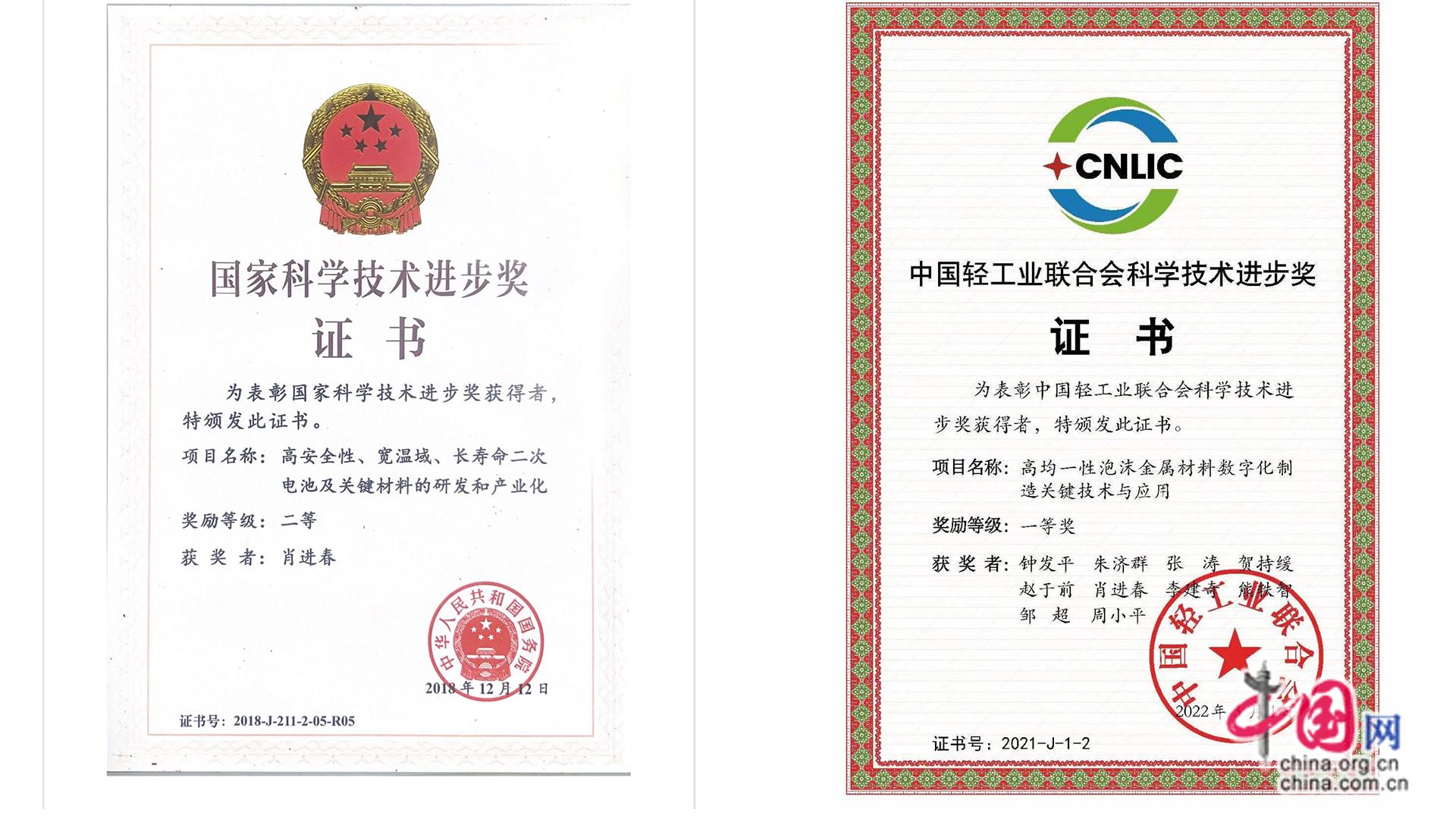 回顧自己在常德力元26年的在職業(yè)生涯,肖進(jìn)春共獲得了25項(xiàng)發(fā)明專利授權(quán),參與了多項(xiàng)科研項(xiàng)目并多次獲得國家級(jí)和省級(jí)科學(xué)技術(shù)進(jìn)步獎(jiǎng)。其參與的《高安全性、寬溫域、長壽命二次電池及關(guān)鍵材料的研發(fā)和產(chǎn)業(yè)化》獲得了國家科學(xué)技術(shù)進(jìn)步獎(jiǎng)二等獎(jiǎng),《高均一性泡沫金屬材料數(shù)字化制造關(guān)鍵技術(shù)與應(yīng)用》獲得了中國輕工業(yè)聯(lián)合會(huì)科學(xué)技術(shù)進(jìn)步獎(jiǎng)一等獎(jiǎng)。其主持的《鎳氫電池電極低成本改善》榮獲“2022年度輕工業(yè)行業(yè)職工優(yōu)秀技術(shù)創(chuàng)新成果”榮譽(yù)。