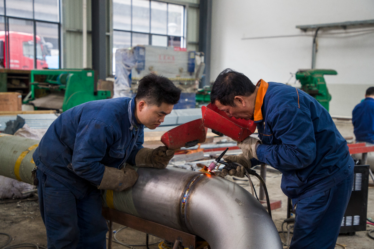 2021年3月,艾愛(ài)國(guó)帶領(lǐng)徒弟給湘鋼焦化鈦合金管焊接。