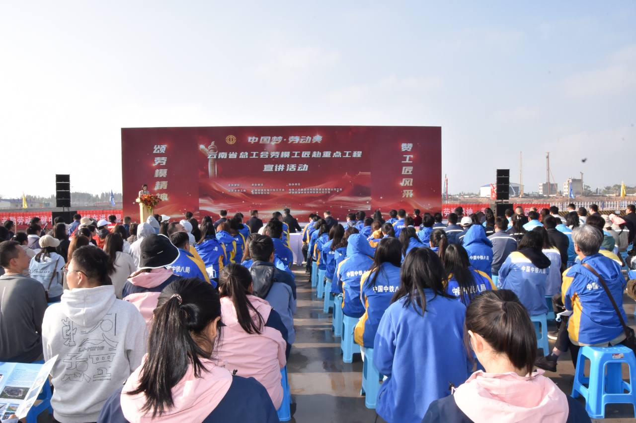 10月29日,由云南省總工會主辦,云南省煤炭電力化工工會、昆明市總工會承辦,中鐵八局昆明鐵路建設有限公司工會協(xié)辦的云南省總工會勞模工匠職工宣講團赴重點工程宣講活動,走進由中鐵八局集團承建的昆明市第十五水質凈化廠項目施工現(xiàn)場開展宣講活動。