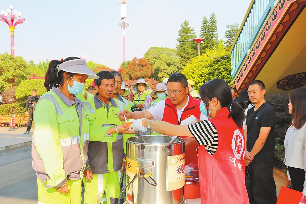 桃源湖公交樞紐站“工會驛站”免費供應愛心粥。