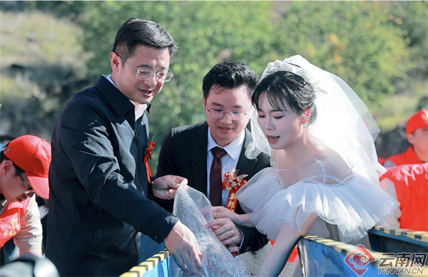 云南網訊(記者 趙崗 通訊員 王紹梅 譚紅 李丹 賀宗健)11月20日,云南省煤炭電力化工工會“會聚良緣”第二屆職工集體婚禮暨大唐云南發電有限公司第八屆青年職工集體婚禮在金沙江畔觀音巖水電站舉行。