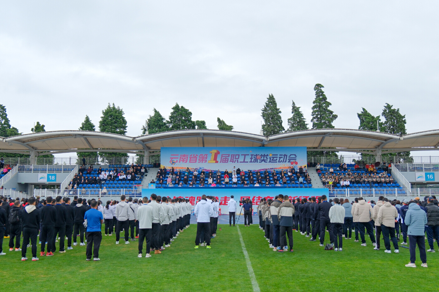 11月23日,云南省第一屆職工球類運動會開幕,16個州(市)總工會、42個省級產業系統公司工會的2300余名職工齊聚昆明海埂體育訓練基地,一展云南職工風采。