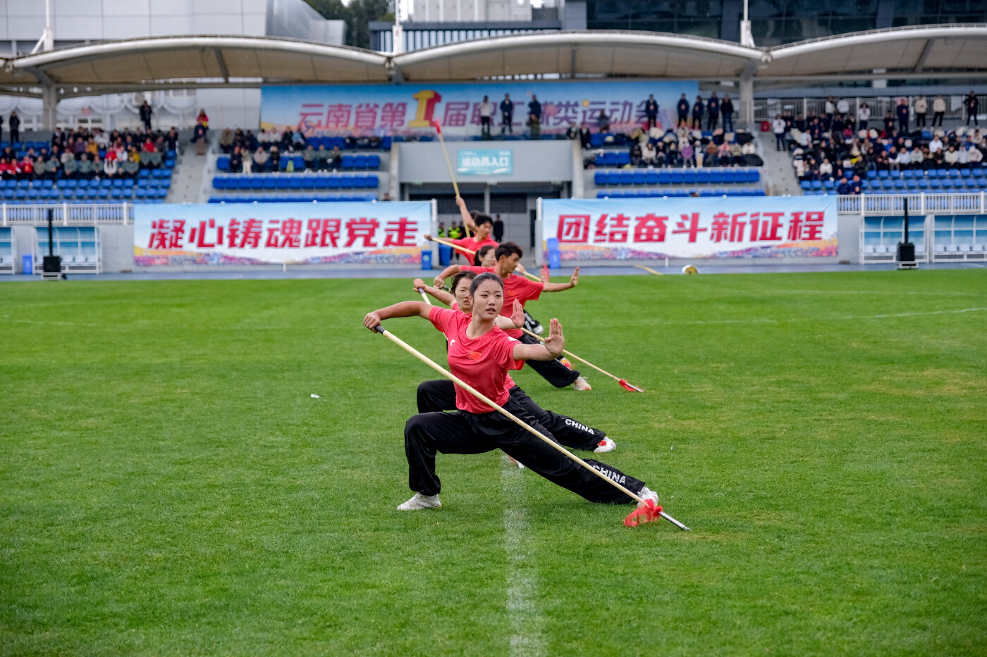 省人大常委會副主任、省總工會主席王樹芬宣布運動會開幕。省總工會、省體育局領導,各州(市)總工會、相關省級產業系統公司工會負責同志、參賽代表隊運動員、裁判員代表參加開幕式。來自各條戰線的職工代表獻上了精彩的文藝表演,展云嶺職工風采,頌祖國盛世風華。由省教育衛生科研工會選送的節目《青春飛揚》,用啦啦操展示出新一代云嶺職工風采,省康旅集團控股股份有限公司工會選送的節目《民族鼓舞》展現云南多彩的民族文化,省教育衛生科研工會選送的《武術展演》展示了體育之美、力量之美,還有勞模工匠代表和云南省獨唱、獨奏、獨舞比賽獲獎代表共同唱響《咱們工人有力量》等,開幕式以全體同唱《歌唱祖國》結束。