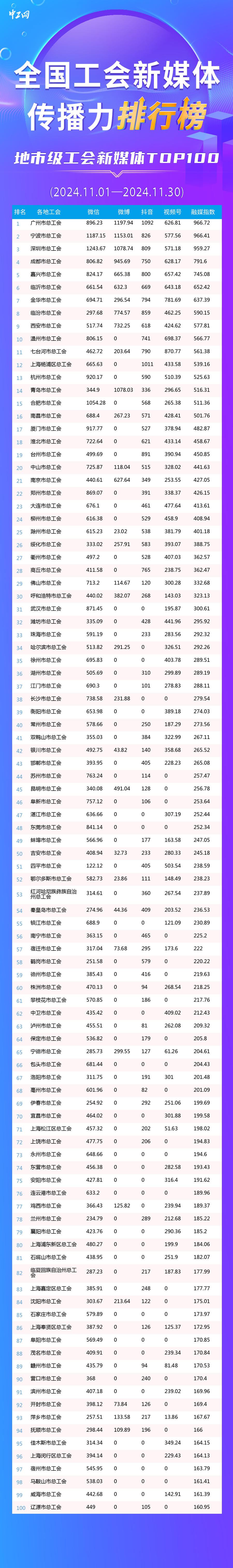 11月地市級(jí)工會(huì)新媒體TOP100